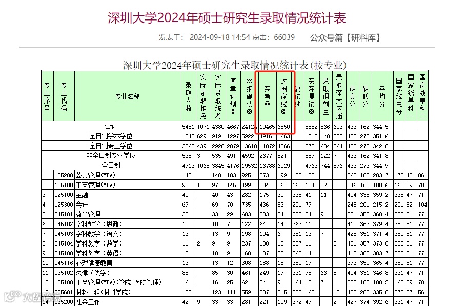 24考研中,深大19465人实考,但仅有6550人过国家线,过线率为33.65%!