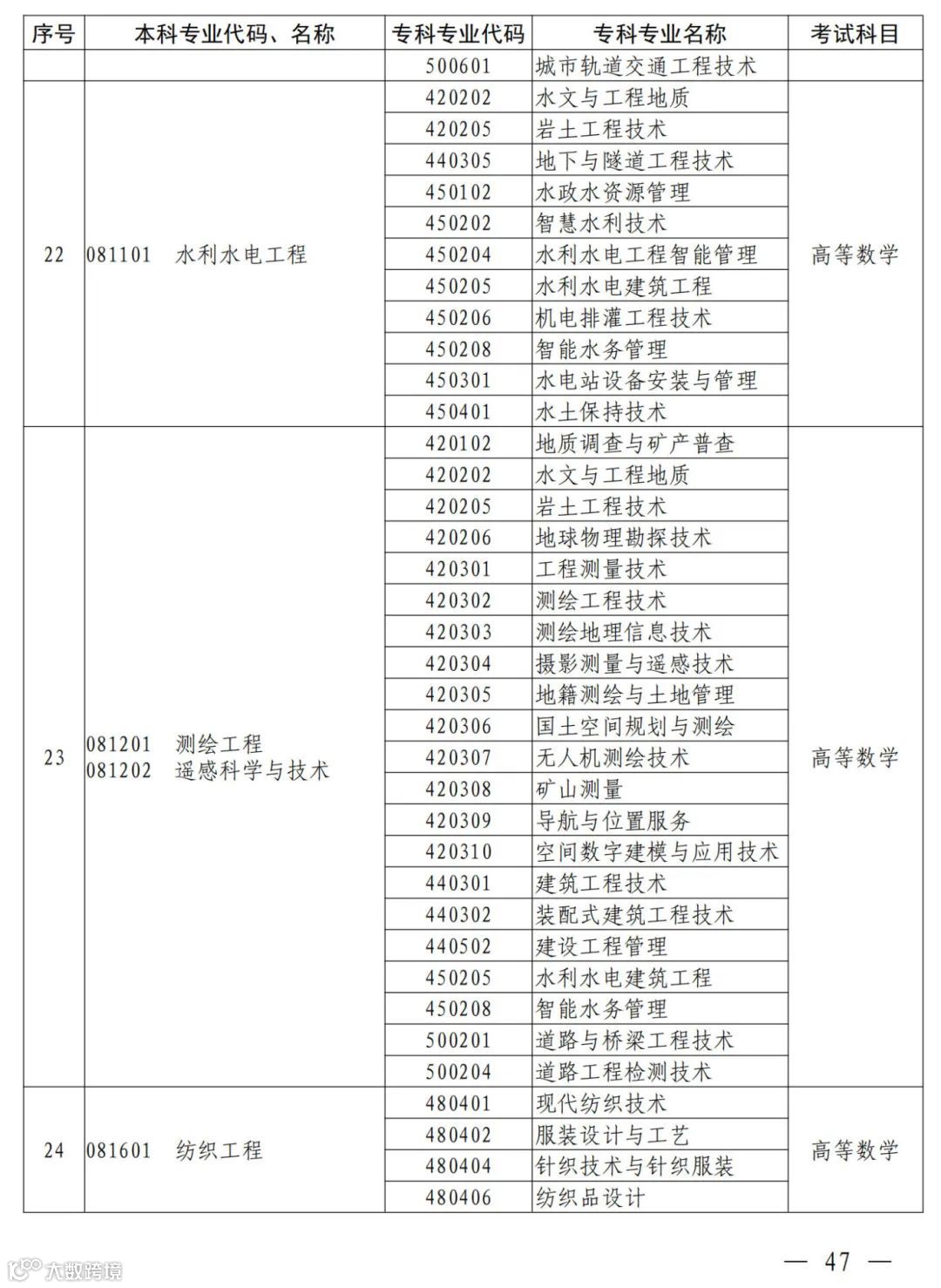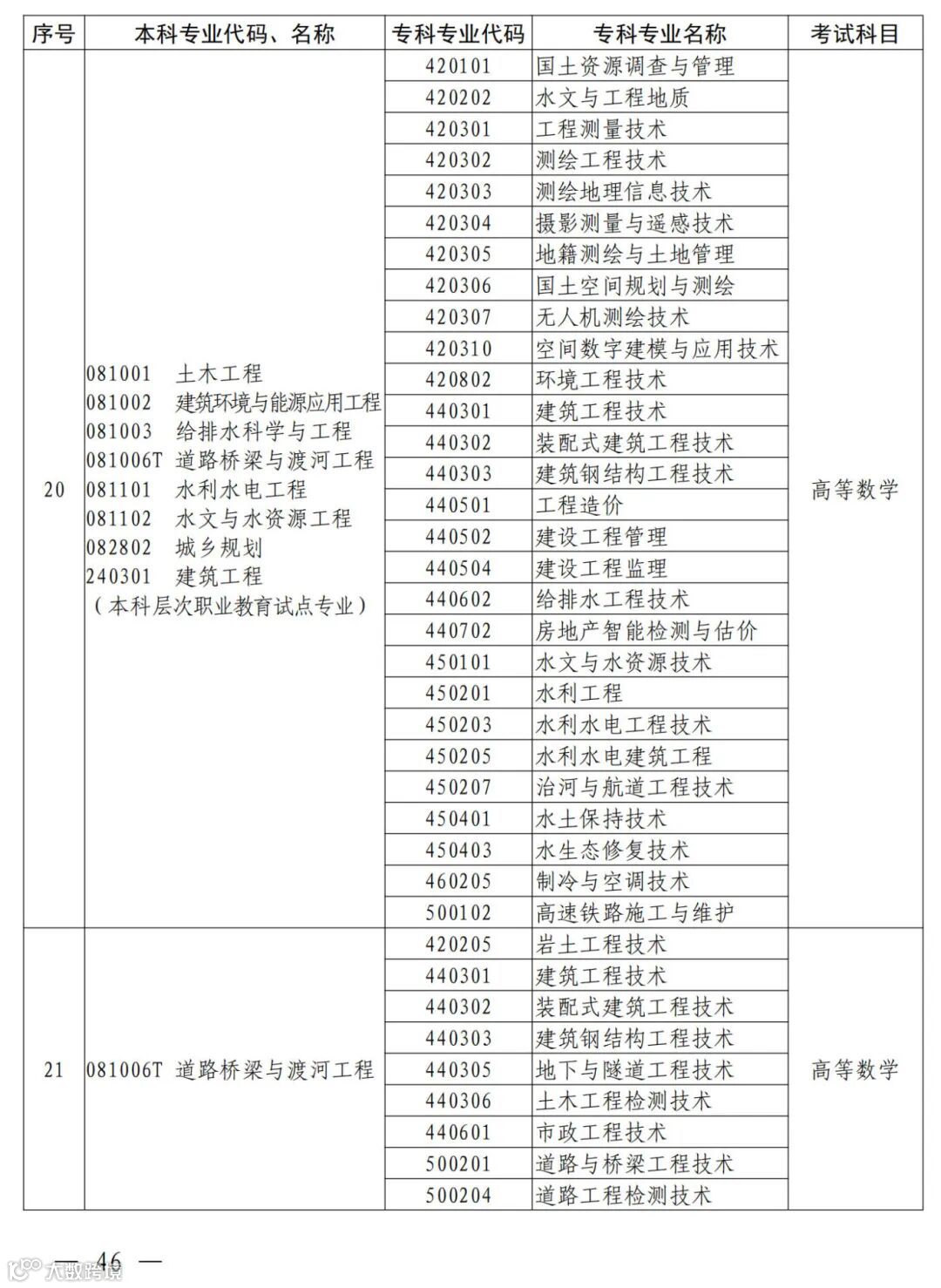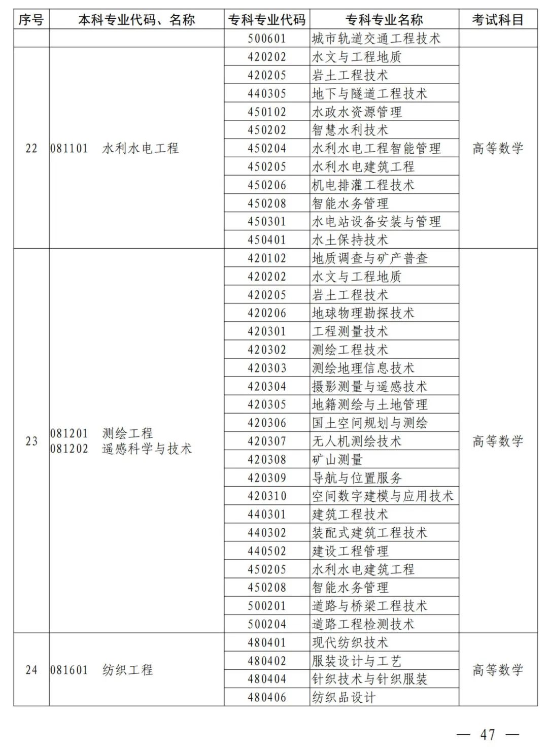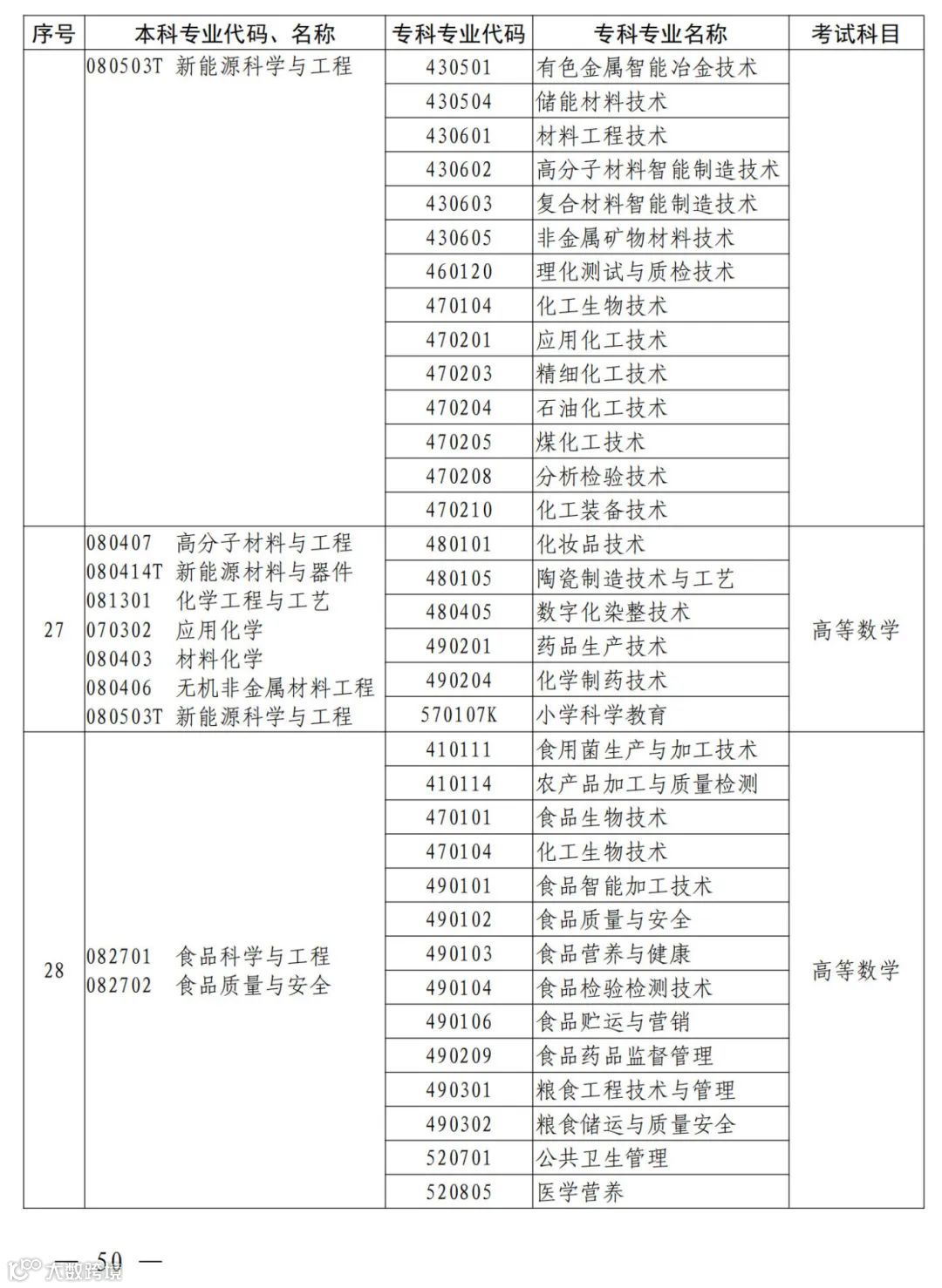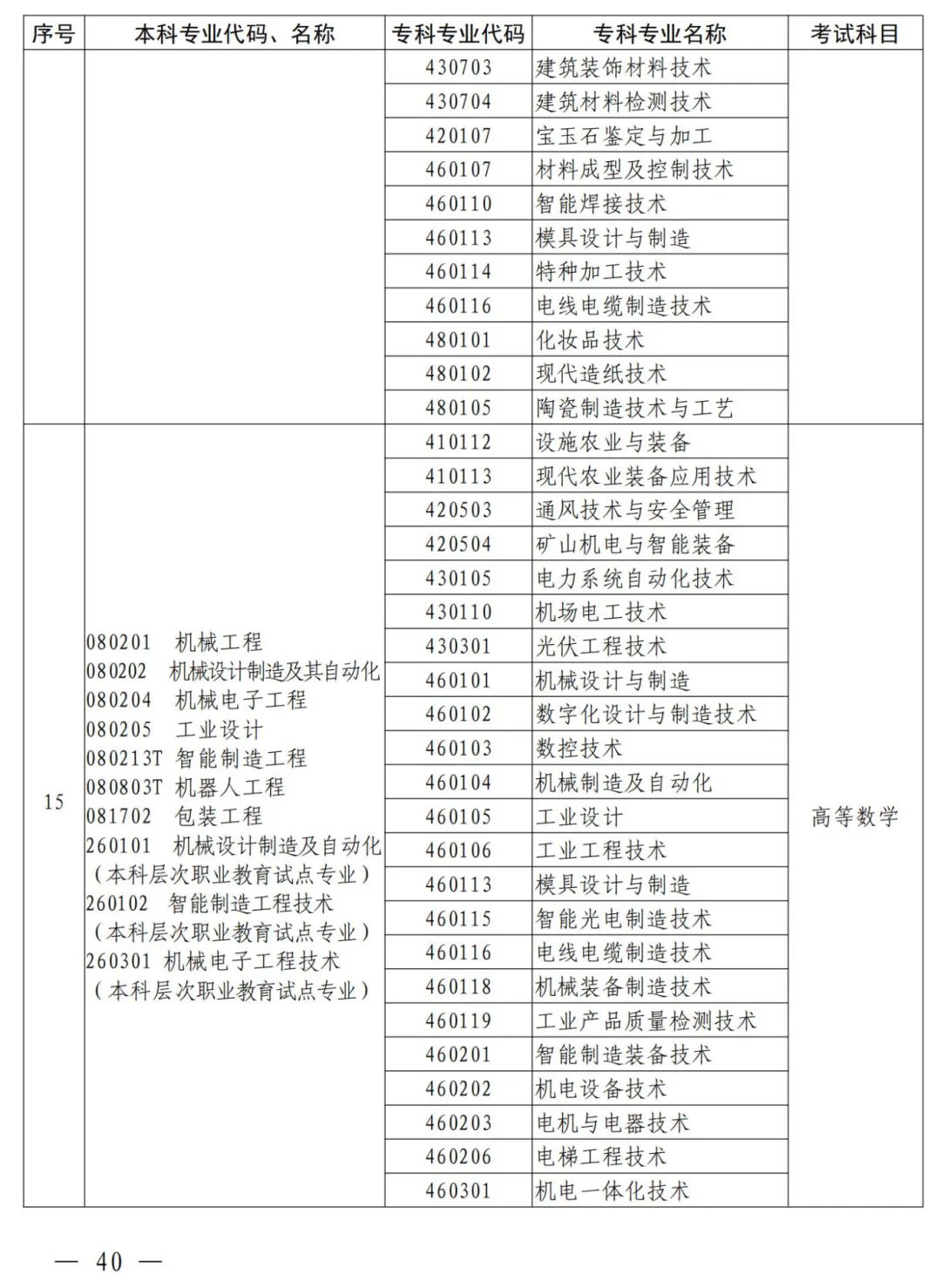 2.河南省2025年普通高职(专科)毕业生进入本科阶段学习本、专科专业对照及考试课程一览表