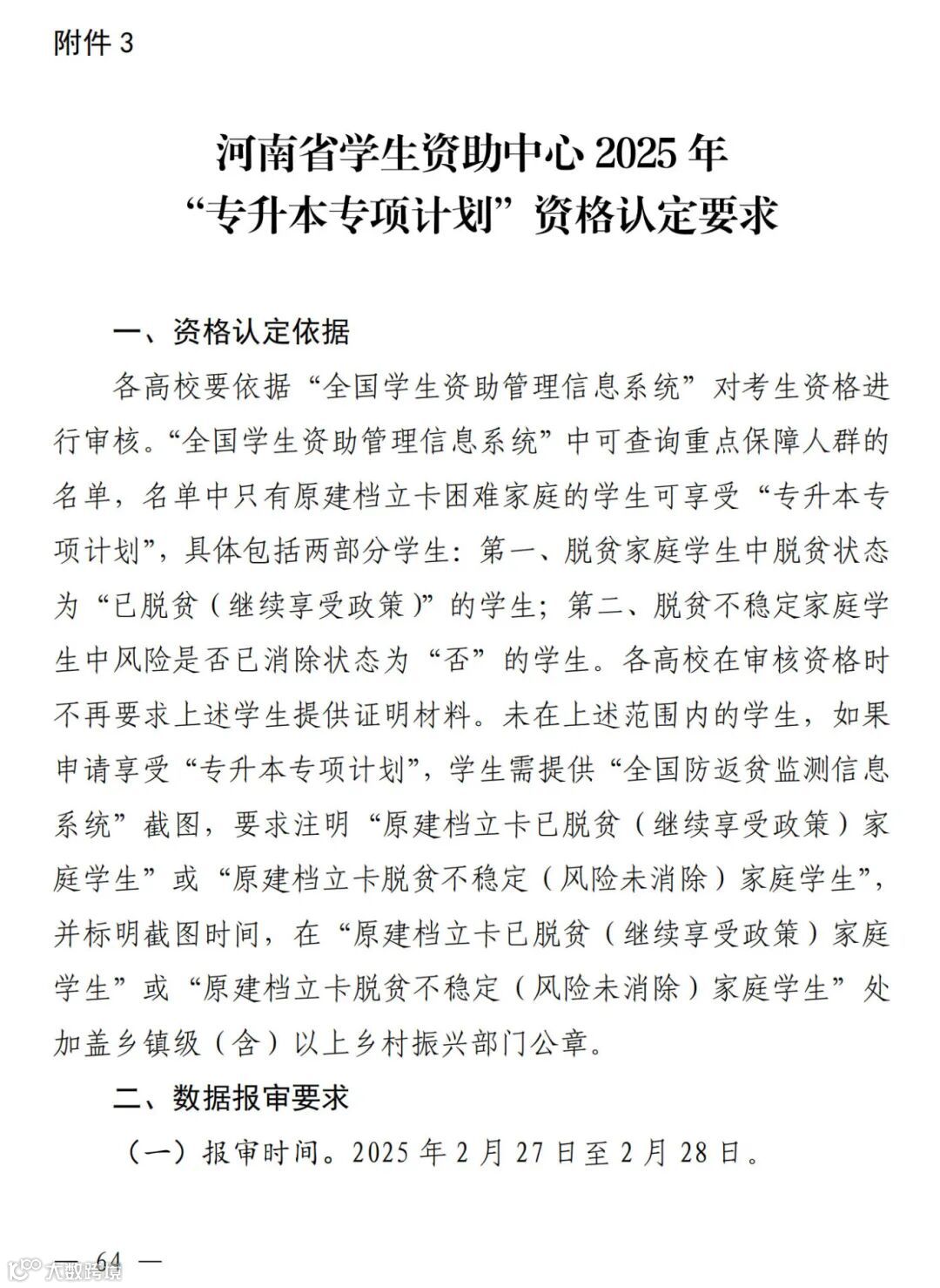 3.河南省学生资助中心2025年“专升本专项计划”资格认定要求