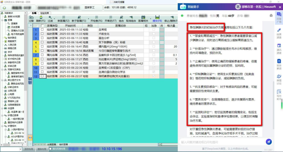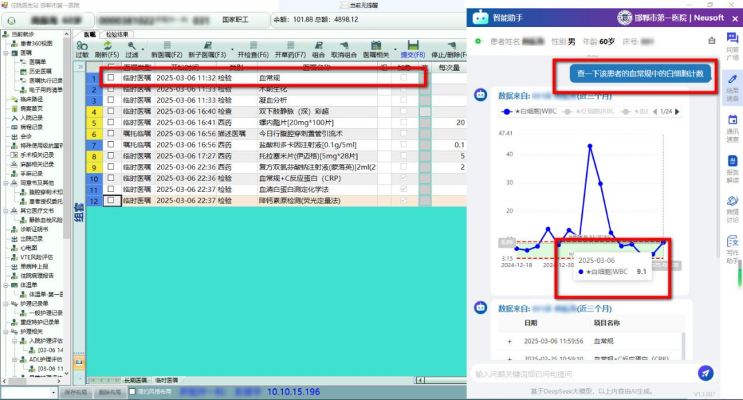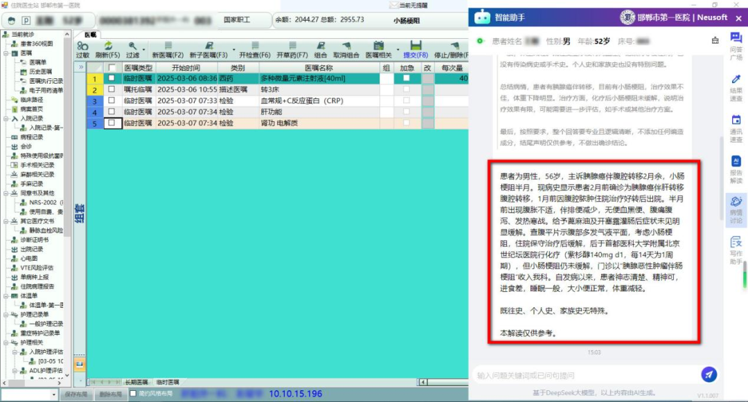 3月7日,邯郸市第一医院Deepseek大模型应用再升级!聚焦医生临床需求,以AI技术助力诊疗决策、优化工作流程,为医疗质量与效率“双提升”注入科技动能!