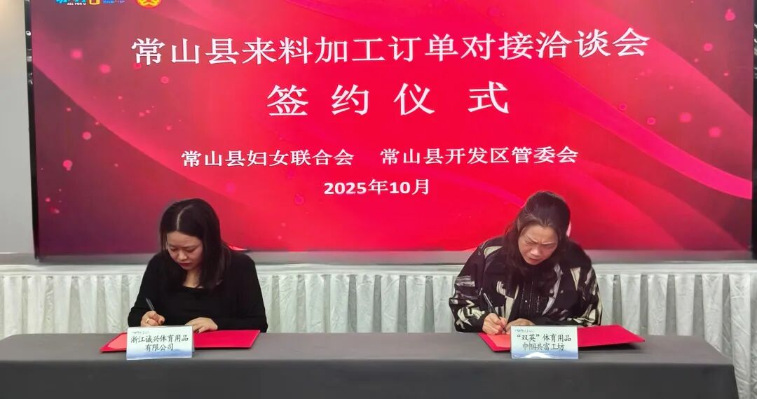 活动现场,浙江常山施翔工贸有限公司与“婷婷服装”巾帼共富工坊、浙江诚兴体育用品有限公司与“双英”体育用品巾帼共富工坊现场达成了合作协议,意味着首批合作项目成功落地。这不仅是供需双方的共赢,更是常山县来料加工产业蓬勃发展的生动写照。
