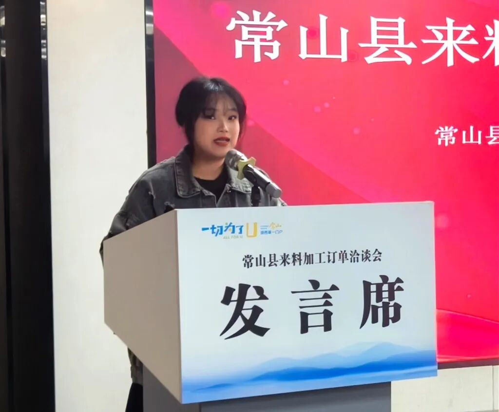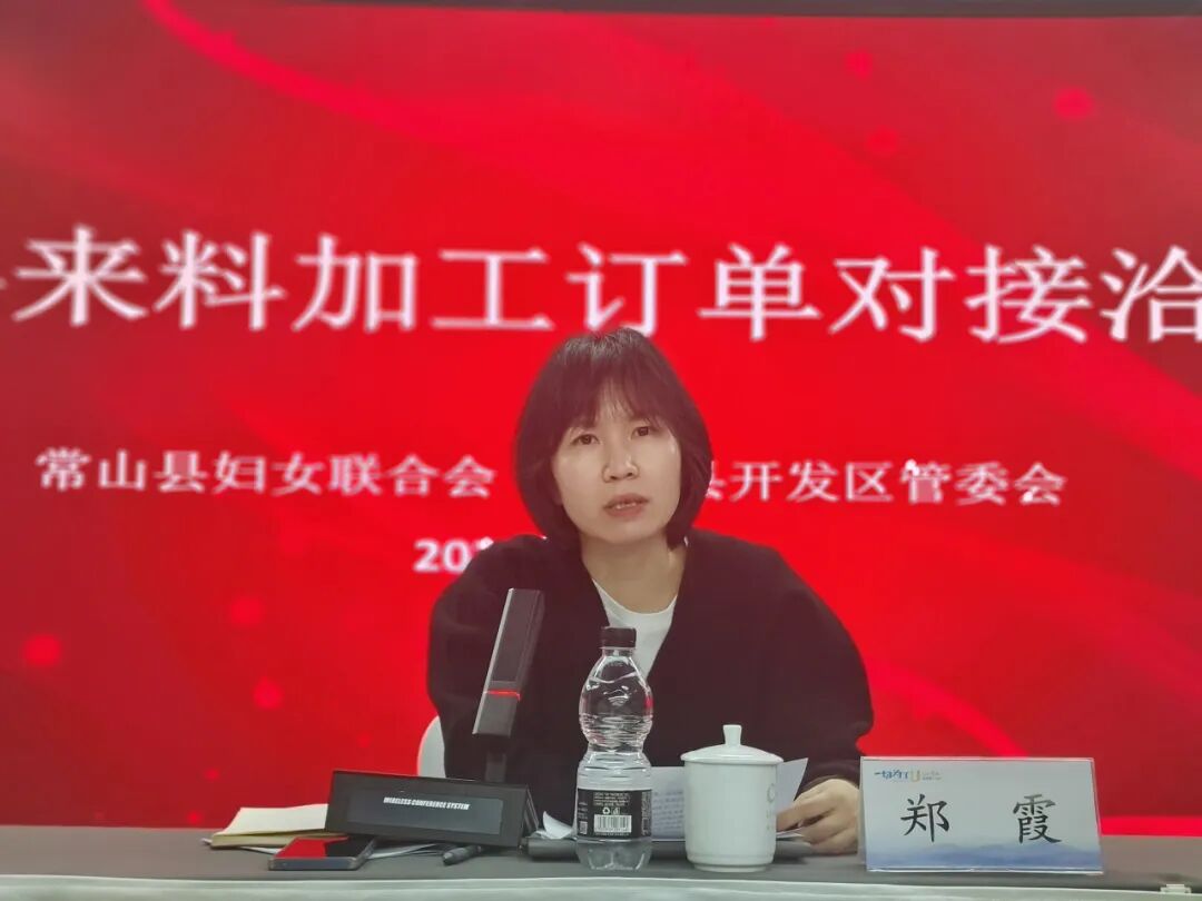 会上,发单企业代表、衢州市红浩人力资源有限公司总经理郑忆珃女士详细介绍了公司当前的订单类型、规模及具体的质量要求,并表达了寻求长期、稳定合作伙伴的真诚愿景,希望通过此次对接,与常山的优秀工坊建立直接、高效的合作关系。