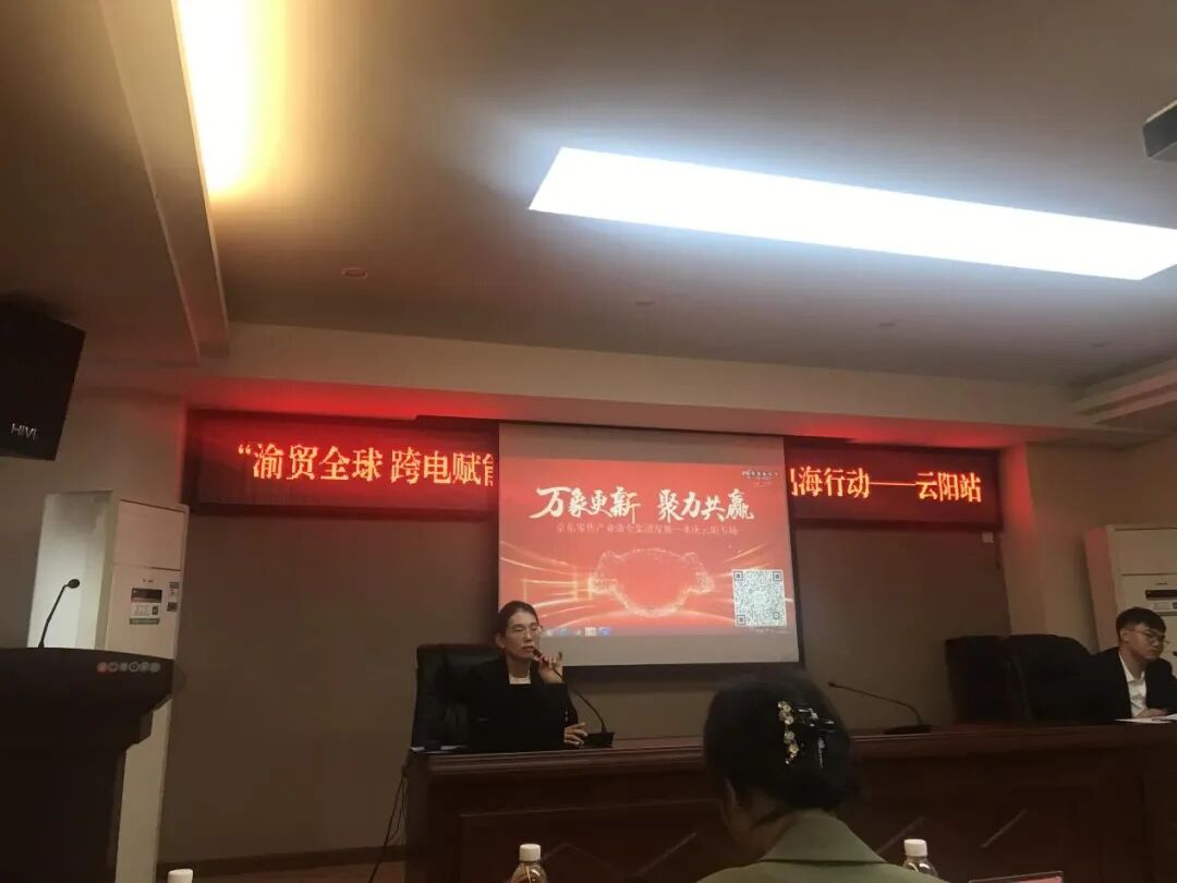 活动开始,由重庆市云阳区商务委员会副主任张小红女士致开幕辞:促进我云阳外贸新业态发展,让更多本土传统企业了解到跨境电商行业发展大趋势,全力推动云阳当地外贸发展。通过“渝货出海 跨电赋能”系列活动,加快跨境电商主体培育,引导本土特色产业带、传统制造企业、外贸企业和国内电商企业更好的利用跨境电商渠道获取订单、拓展市场,实现转型升级让云阳优质好货通过跨境电商模式走向全世界。