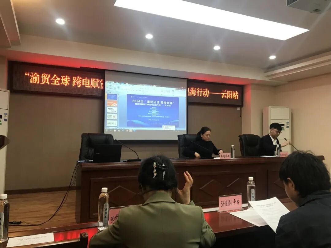 近日,由重庆市商务委员会指导的2024年重庆市“渝贸全球 跨电赋能”跨境电商助力产业带出海行动第五站在云阳县商务委员会大楼正式举办。活动由重庆市新兴跨境电商发展中心和重庆市云阳县商务委员会党委副主任共同主持召开。