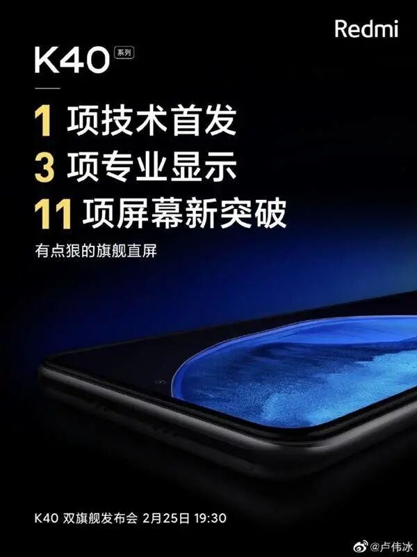 据品玩报道,Redmi K40 系列即将在 2 月 25 日发布,Redmi 近期也公开了部分关于该系列手机的配置。