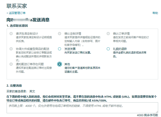 3.给买家邮件,委婉邀请留评。在订单页面点击买家名称,然后选择“其他”或者其他可选择的主题,给买家发邮件,咨询买家对产品的感受,委婉向买家邀评,一定要注意不能直接请求买家留好评。一定要委婉,比如:If you are satisfied with our product, would you please leave your opinion on our product page. It would be help other buyers know our products better. Thanks! 千万不要直接说please leave us 5 stars review. 切记!