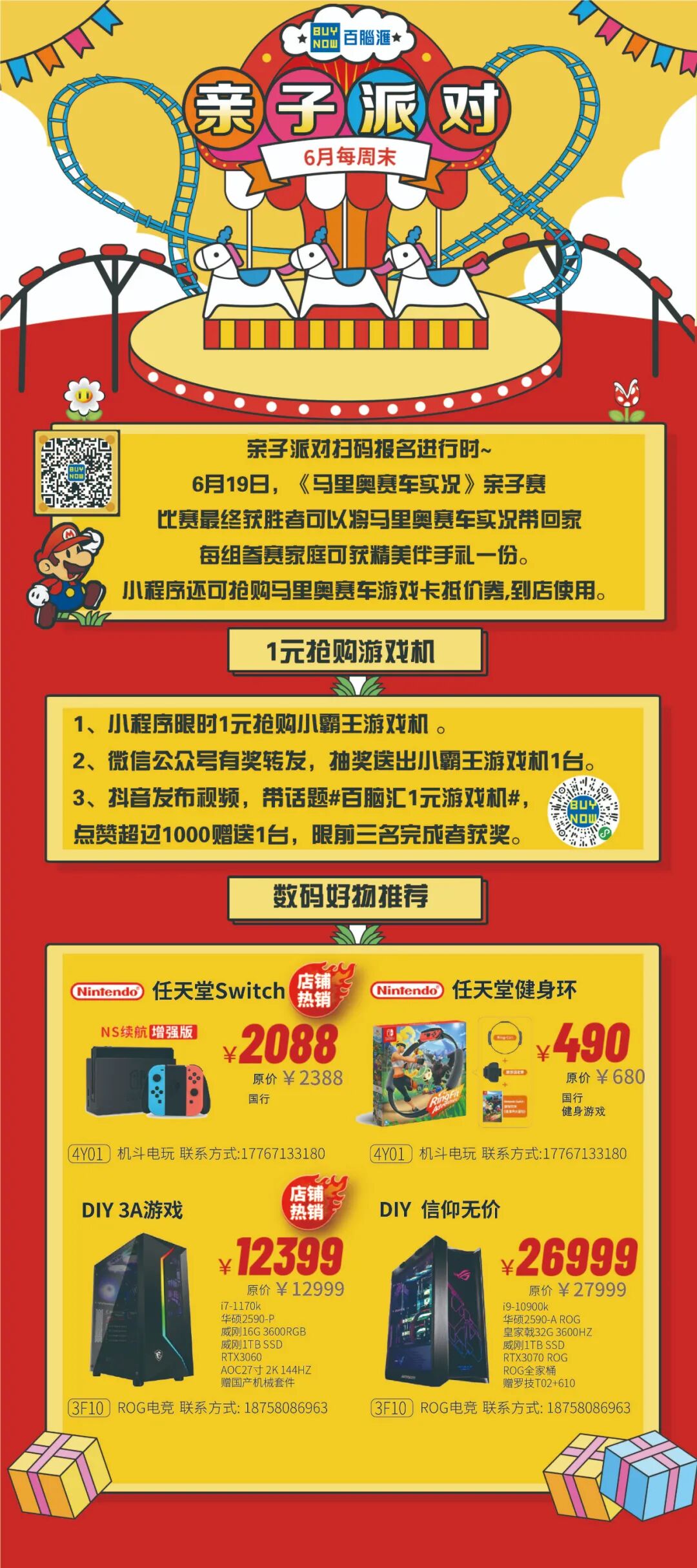 2、比赛最终获胜者可以将马里奥赛车实况带回家;每组参赛家庭可获精美伴手礼一份。