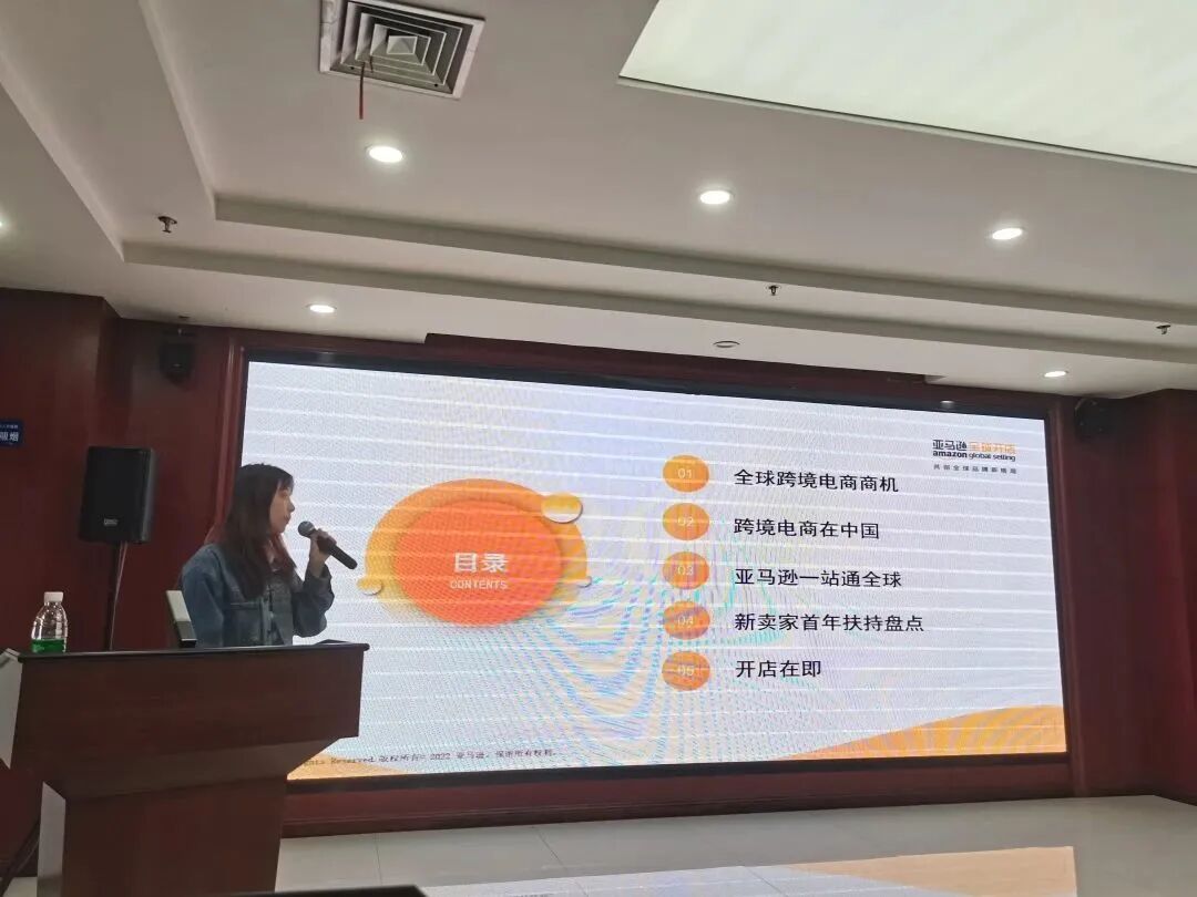 首先,亚马逊区域拓展经理Cissy对全球跨境电商商机、中国跨境电商发展、亚马逊本土化服务等方面进行了宣讲,表示:全球电商占比增长迅速,中国跨境电商也向好向快发展,连续多年快速稳健增长,新外贸业态初步形成;目前全球17个站点向中国卖家开放,北美、欧洲、日本电商机遇广阔,是企业开辟新市场的重要渠道。