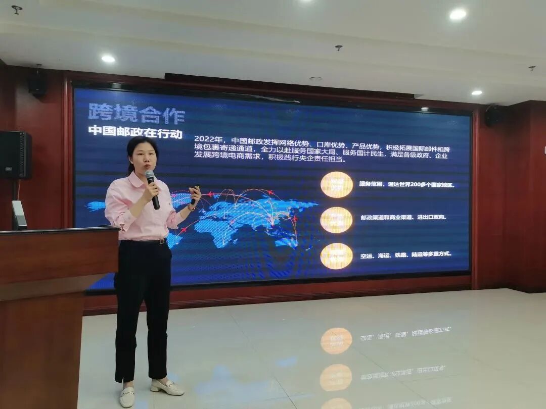 重庆邮政国际分公司总经理龙彦女士介绍了邮政在跨境出口物流服务的解决方案以及中欧班列(渝新欧)专线陆运,后续将继续拓展“一带一路”沿线国家和RCEP区域协定国家和地区的业务海外布局,给企业提供中邮海外仓的便利仓储及服务支持。