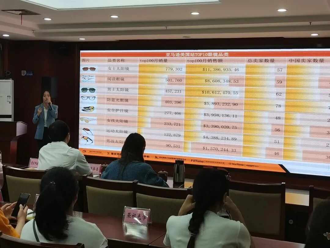 成渝RCEP跨境贸易中心生态运营经理刘妍兰女士介绍了各个跨境电商平台的优劣势,结合荣昌本土眼镜产品和平台爆款眼镜产品分享成功案例。随后介绍了菲欧坦跨境电商孵化器给入驻企业提供包括人才孵化、办公场地、园区政策扶持 、人才输送、优质服务对接等跨境电商全环节资源赋能服务以及系列优惠政策,助力重庆持续打造跨境电商生态。