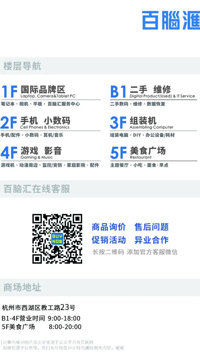 百脑汇杭州店官方公众号,商场活动一手掌握,新品潮品即时推送!精彩连连好礼不断,每周末商场活动等你狂欢!