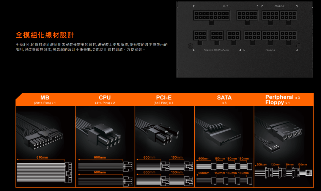 80PLUS 金牌认证、高品质日系电容用料和12公分智能静音风扇,可以提供更好的电源转换率,同时延长电源的使用寿命,将噪音降到最低。