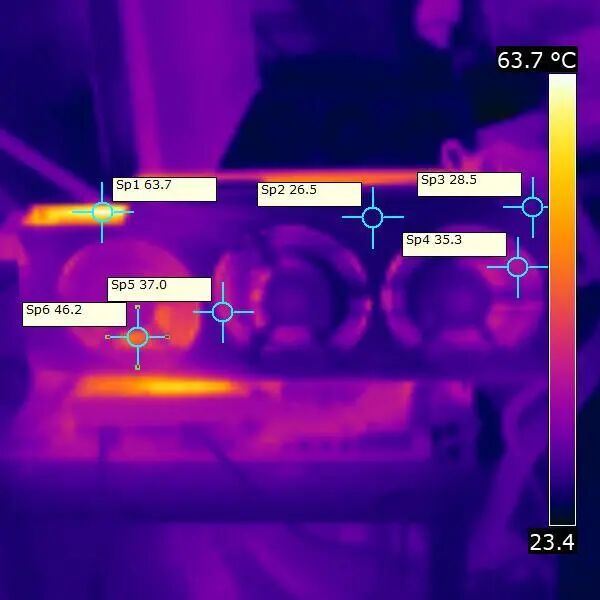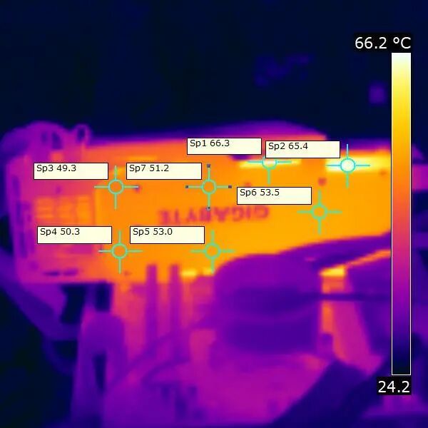 借用热成像仪也可以看出显卡整体温度方面非常平均。