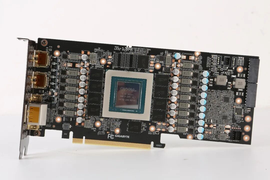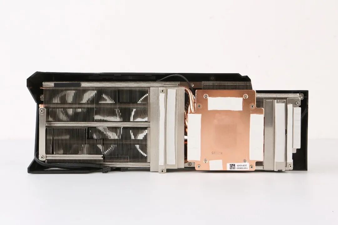 不得不说,这一代显卡在设计上为了更好的压制散热,外形和散热方面已经做到了极致,就拿我们的这款技嘉GeForce RTX 3080 GAMING OC 10G 魔鹰显卡来说, 硕大的铜板与7根复合式热管散热设计,直接贴合在GPU与显存核心上,再加上导热垫设计,可以有效保证GPU和显存核心能够再超频的状态下维持稳定的工作。