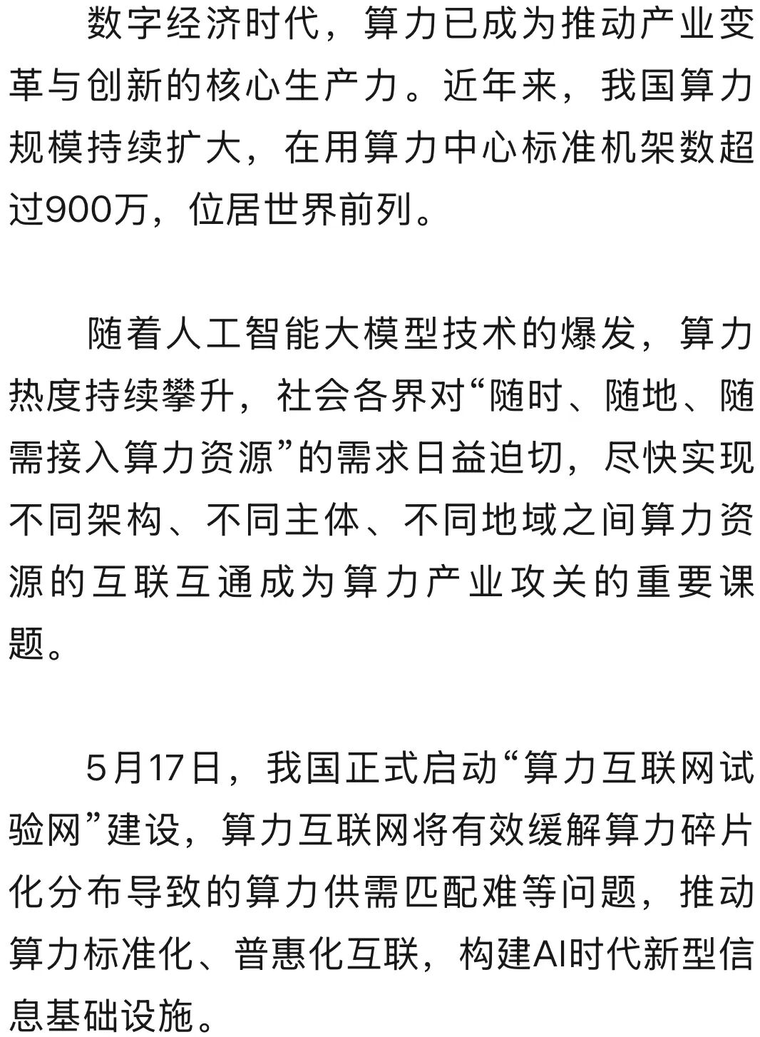 记者了解到,在各方协力推进下,我国算力互联网建设已取得初步成果。在资源互联调度层面,已完成131家企业499个算力资源池的资源标识,汇聚了111.3EFlops智能计算资源,用户人工智能、游戏渲染等应用可以就近匹配接入最佳算力。同时,形成《算力互联网体系架构1.0》初稿,在北京、上海等地开展算力互联网平台试验业务工作,完成任务调度近300次,三大基础电信企业算力标识网关的标准化验证工作也取得突破性进展。
