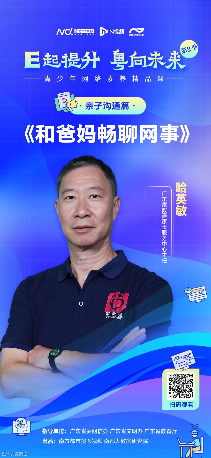 近期,在广东省委网信办、广东省文明办、广东省教育厅的指导下,南方都市报、N视频、南都大数据研究院推出“E起提升 粤向未来”青少年网络素养精品课(第二季),邀请来自各界的代表为孩子们的网络生活答疑解惑,培育未成年人网络安全意识、文明素养、行为习惯和防护技能。系列课程共6集,分为网络使用、网络素养、网络道德、网络法治、网安教育、亲子沟通等篇章,设置有《网络沉迷那些事》《网为我用》《做网络文明“小达人”》《网络社交的正确“攻略”》《一份给青少年的“反诈指南”》《和爸妈畅聊网事》六大课程主题。