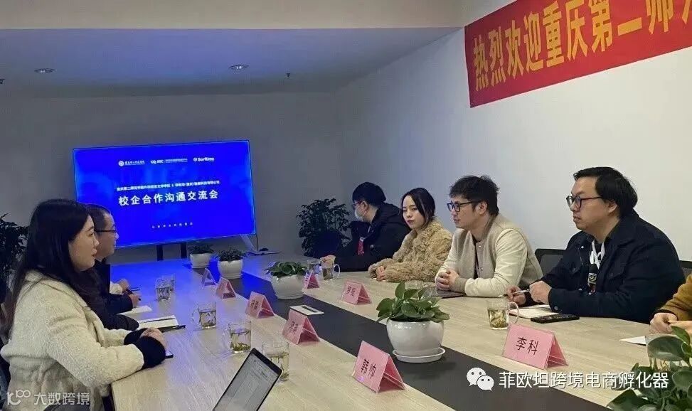2023年2月14日,我司【菲欧坦(重庆)数据科技有限公司】(下称菲欧坦)与重庆第二师范学院商外语言文学学院开开展校企合作沟通交流会。菲欧坦总经理罗挺、菲欧坦旗下菲欧坦跨境电商孵化器(下称孵化器)负责人刘妍兰、菲欧坦市场部负责人杨晨宇等作为企业代表与重庆第二师范学院外语言文学学院党总支书记符淼、学院院长徐飞、学院副院长蒋艳、商务英语系教研室主任李慧、学生辅导员韩帅等院方代表,在位于重庆寸滩保税港水港综合大楼的菲欧坦办公驻地开展校企合作沟通的友好交流会议。