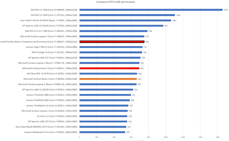 微软公布了 Surface Book 3 系列笔记本电脑,包括13英寸和15英寸两款,搭载了十代酷睿处理器,最高可选英伟达Quadro RTX显卡。现在,外媒PC World对一款15英寸版本进行了性能评测,这款搭载了i7-1065G7处理器和GTX 1660 Ti Max-Q显卡。