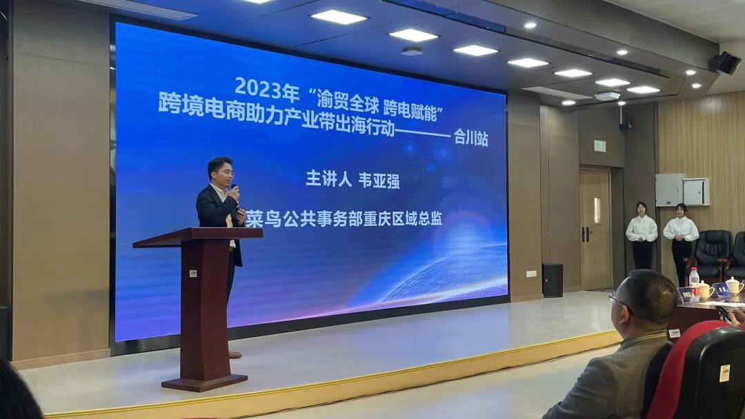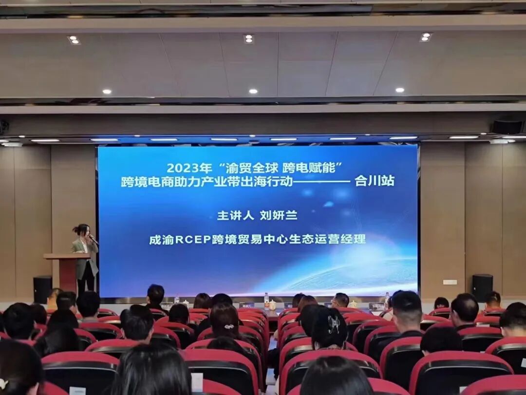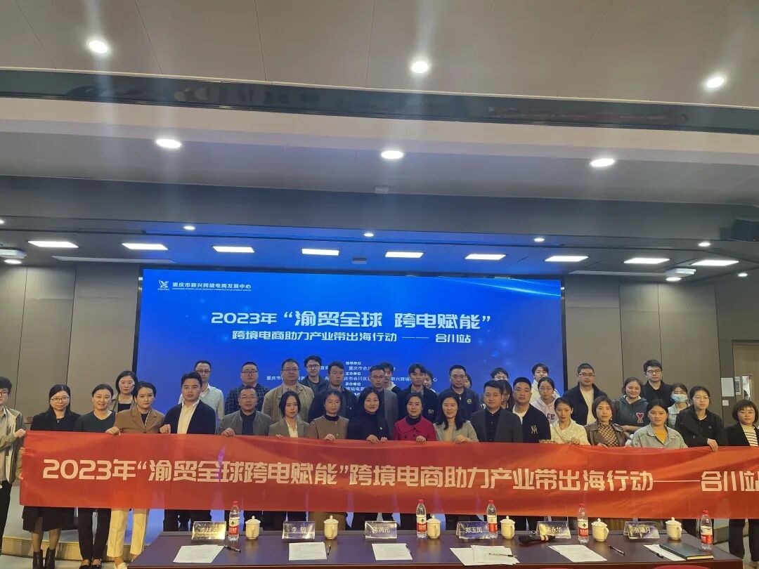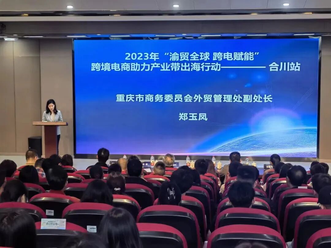 3月30日 2023年“渝贸全球 跨电赋能”跨境电商助力产业带出海行动- 合川站 在 重庆对外经贸学院讲演厅隆重举行。本次活动由重庆市商务委员会、共青团重庆市合川区委、重庆市新兴跨境电商发展中心主办,重庆市合川区商务委员会,重庆合川区人民政府倾力指导,重庆市新兴跨境电商发展中心承办。
