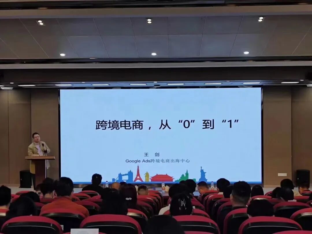 何为跨境电商?Google ADS 跨境电商出海中心王剑为到场的学生和企业家进行了如何从0-1的开创跨境电商跨境业务的培训、跨境电商独立站营销新模式的优势以及企业如何拓宽数字化营销渠道 。