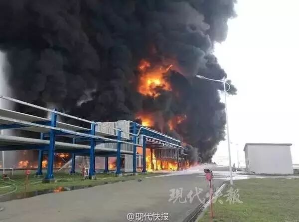 据公安部消防局官方微博“中国消防”信息,现场共有42个储罐,其中油品储罐12个,主要是柴油和汽油;危化品储罐30个,主要是脂类、醇类。