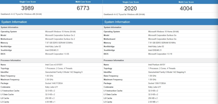 同时,还有外媒曝光了m3-8100Y版本Surface Go 2的GeekBench 4跑分。