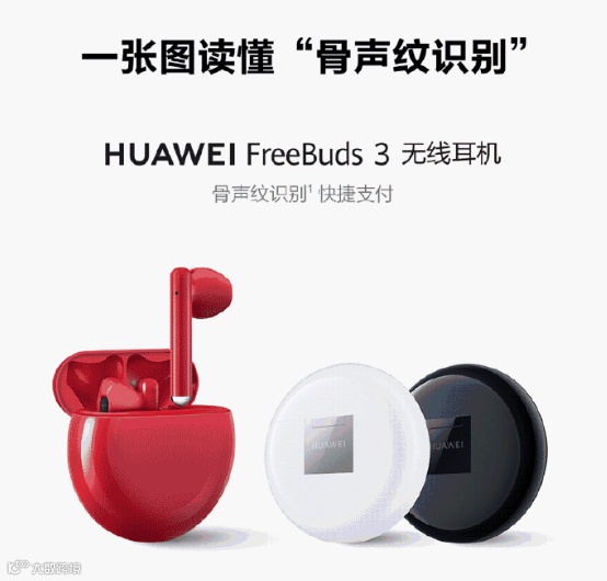 华为FreeBuds 3无线耳机也一同亮相,搭载全新骨声纹识别技术,闻声识人,一句话完成身份验证,支付快人一步。