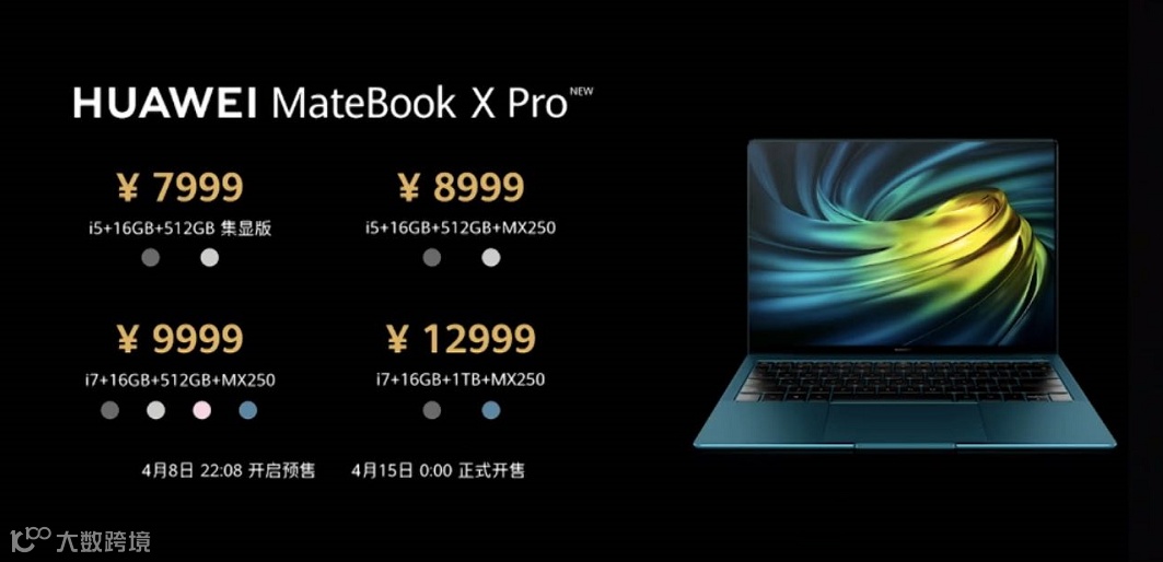 定价方面,华为MateBook X Pro 起售价为7999元,最高12999元,4月15日正式开售。