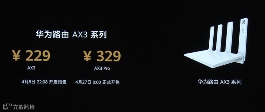 华为路由AX3系列采用凌霄自研芯片,支持华为Wi-Fi 6+技术,无线速率高达3000Mbps。其中,AX3定价229元,AX3 Pro定价329元,4月27日正式开售。