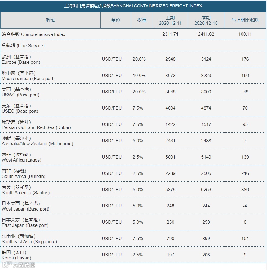 根据上海集装箱运价指数,上海至南美平均即期运价为6,256美元/ FEU。费率同比增长约213%。