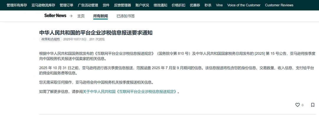 跨境卖家熟悉的亚马逊、eBay、Shopee、Lazada等平台均已纳入监管范围。速卖通、SHEIN等多个跨境平台已通过商家后台向卖家发布相关通知。