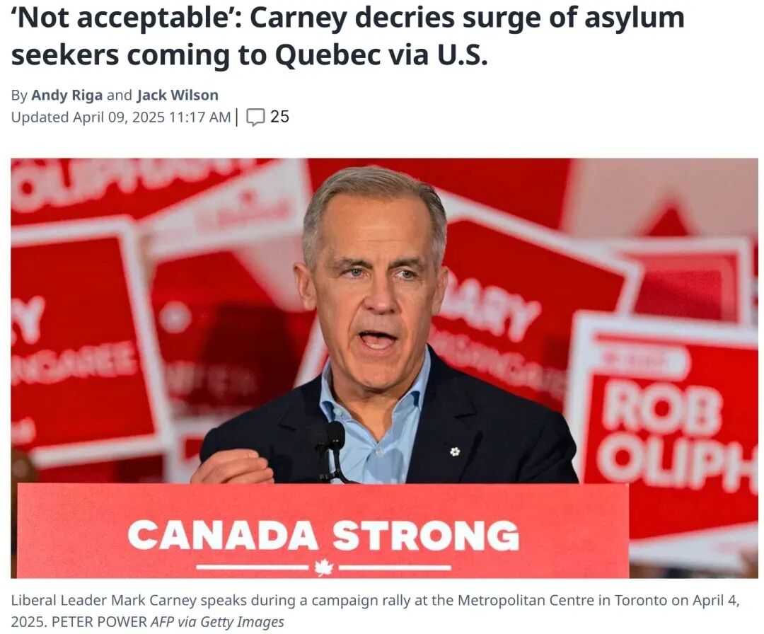 面对这种突如其来的难民潮,加拿大自由党领袖马克·卡尼(Mark Carney)毫不掩饰地表示:“这种状况绝对不可接受,美国不能把他们所有的庇护者都送到我们这里来!”