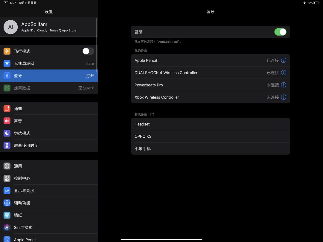 然后在 iOS 设备中进入「设置」>选择「蓝牙」>在「其他设备」中选择你的手柄并且点击进行连接。