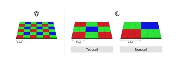 三星S20 Ultra的九合一技术,却能将相邻的九个像素,合成为一个2.4微米大的单像素。