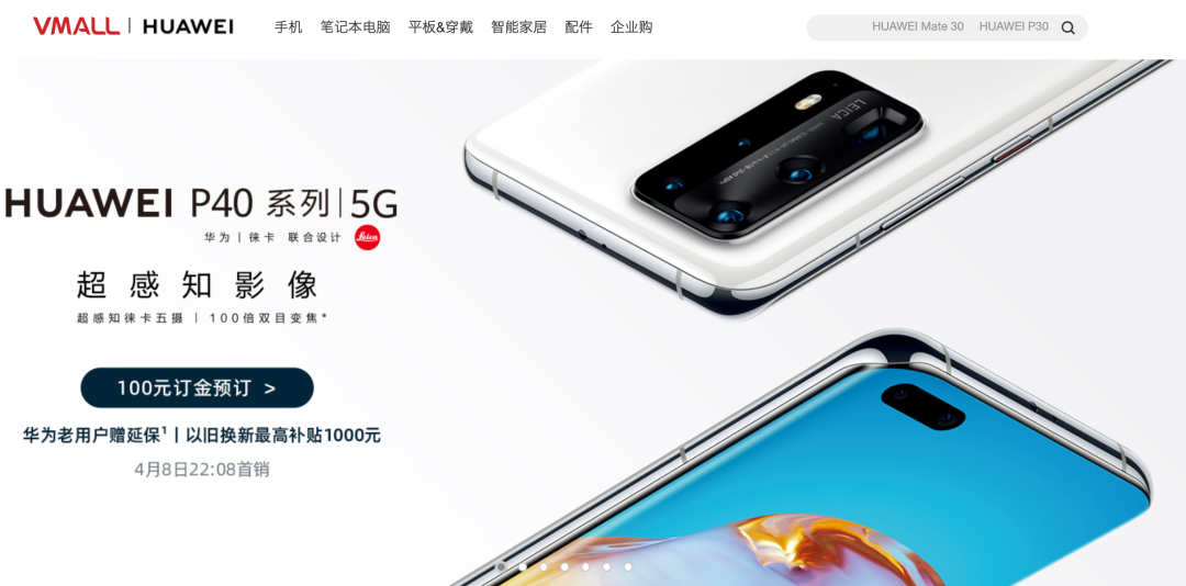 华为P40系列在各大平台目前已经开启100元预订活动,国行发布会将于4月8日19:30举行,当天4月8日22:08首销/尾款支付。