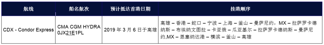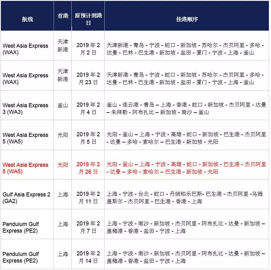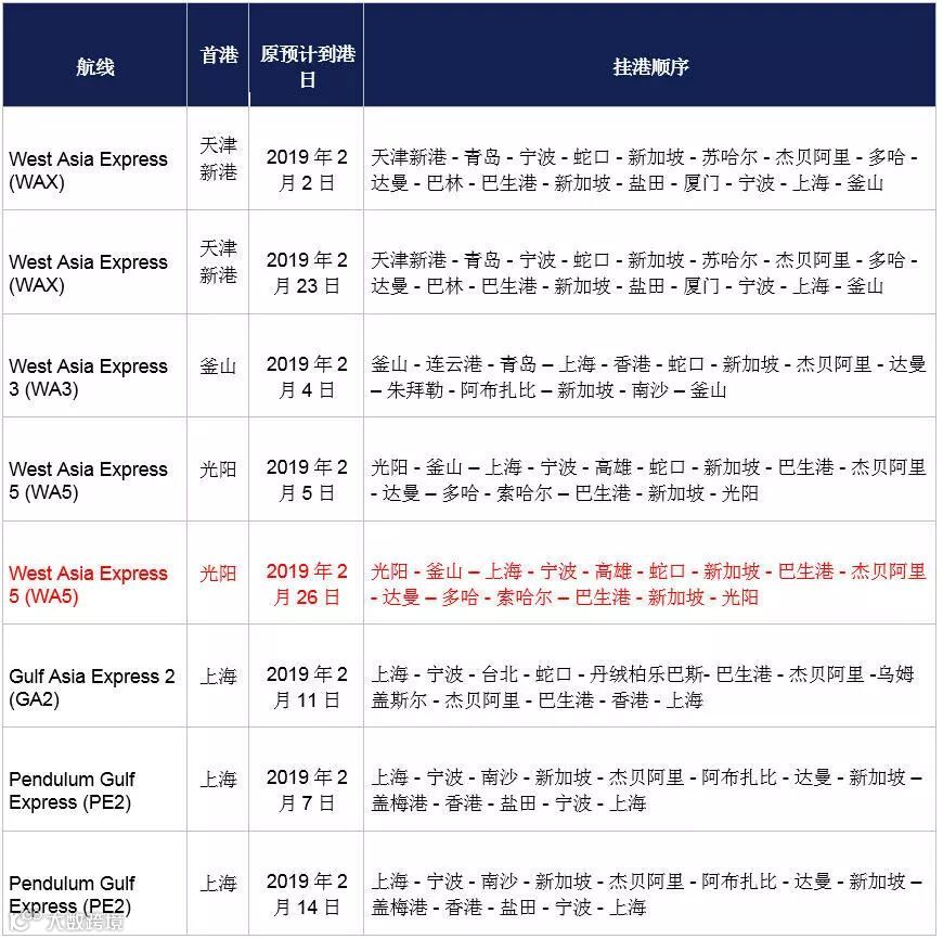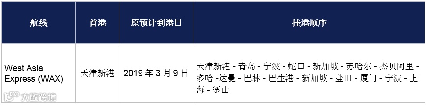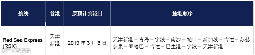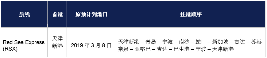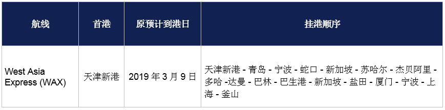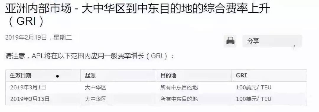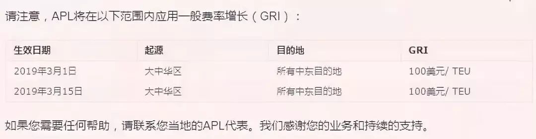 自2019年3月1日-3月15日,大中华区至所有中东目的地综合费率上升100美元/TEU。