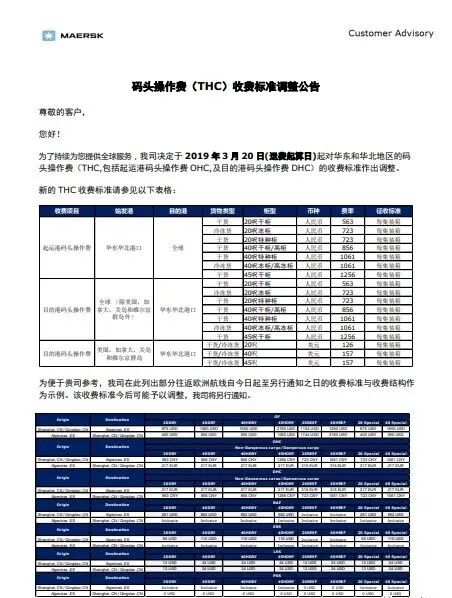 3月20日起,马士基将对华东华北地区的码头操作费收费标准作出调整: