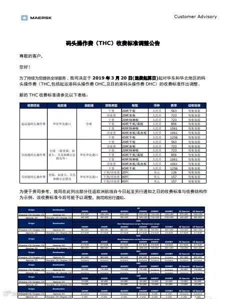 调整后收费标准为人民币140元/20’,人民币280元/40’,以实际装船日起算。具体通知如下: