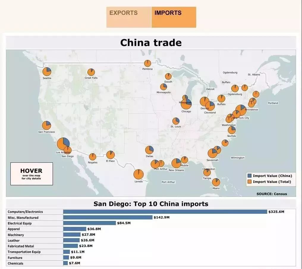 据美国商务部统计,2017年全年美国从中国进口商品5056亿美元,占美国进口总额的21.6%;电机、机械、家具、玩具、服装、皮革箱包等中国商品越过大洋抵达美国港口,不但满足了美国消费者的需求,也为美国的经济增长做出了贡献。