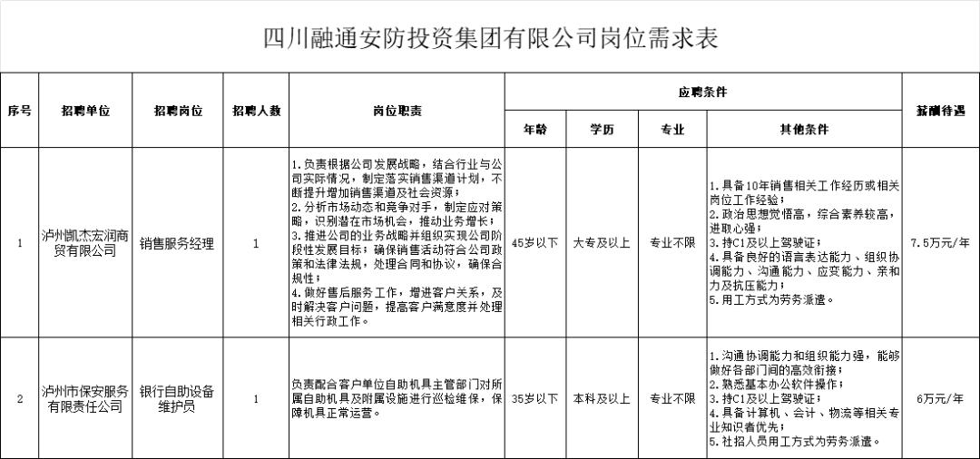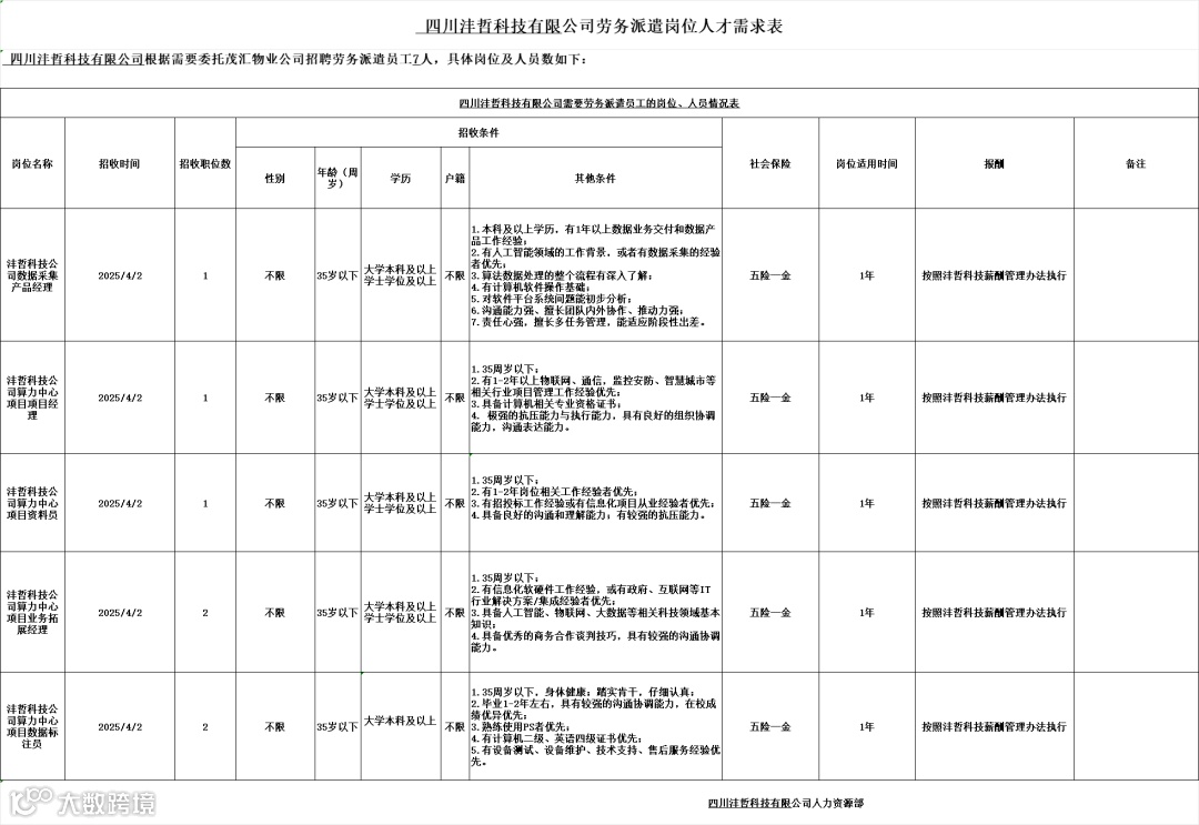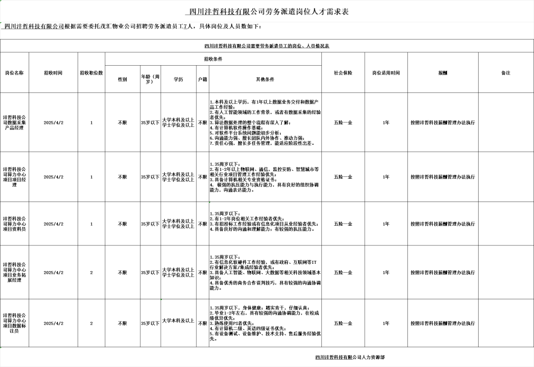 泸州茂汇物业管理有限责任公司受四川沣哲科技有限公司委托,面向社会公开招聘工作人员7名