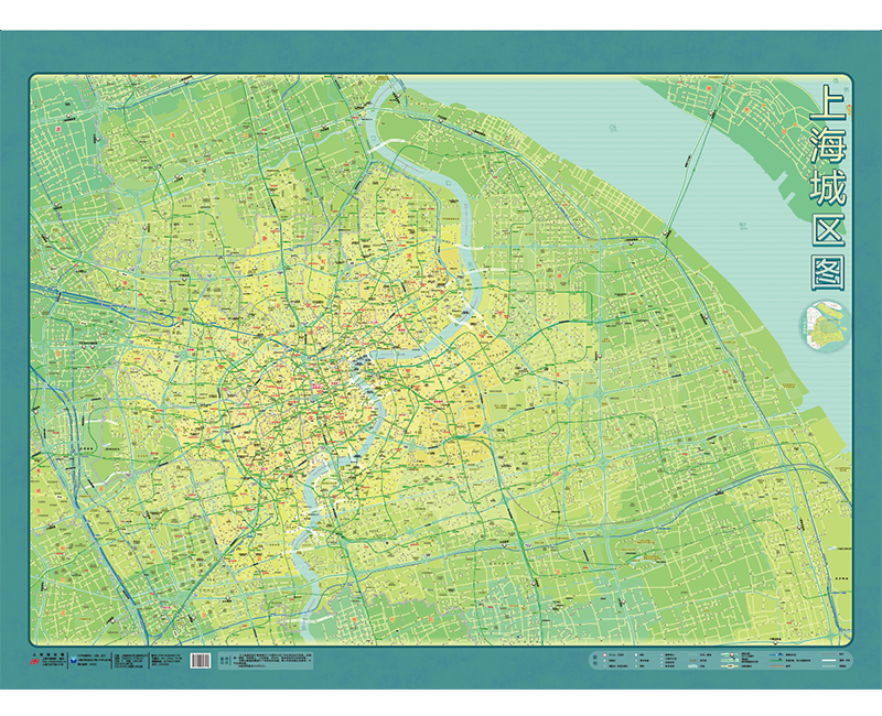 本图是全面反映上海市整个面貌的普通地图,内容涵盖上海市的行政区划、居民地分布、河流网、交通网等信息以及其他的地理信息,是一张适合广大企事业单位办公室张挂的地图。
