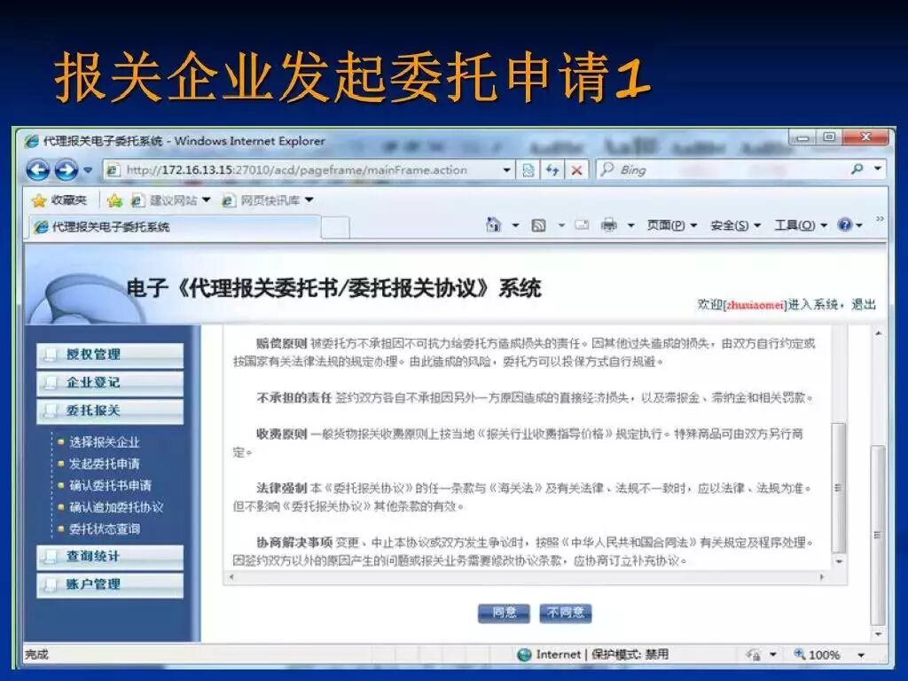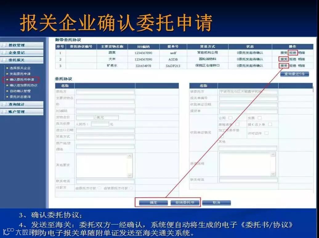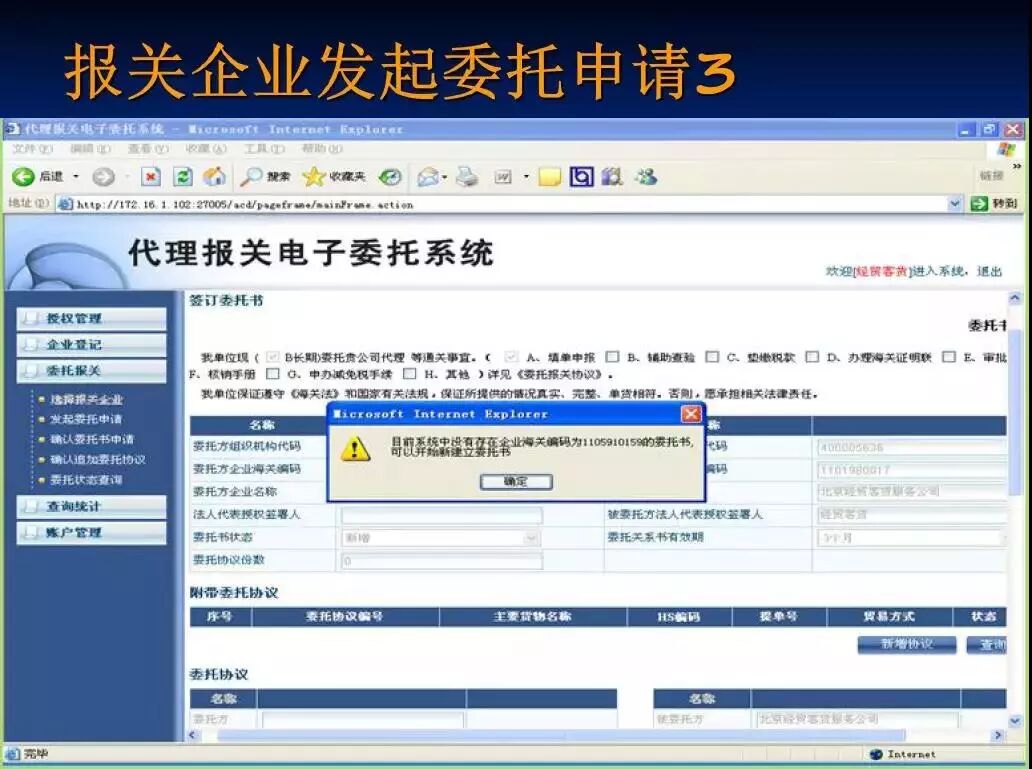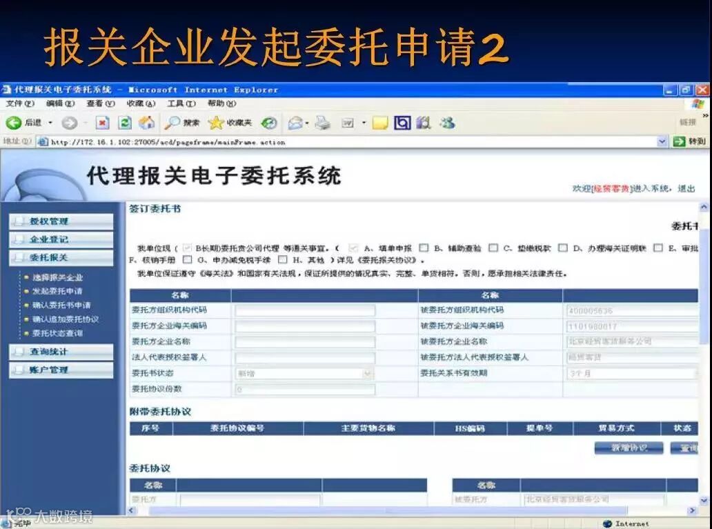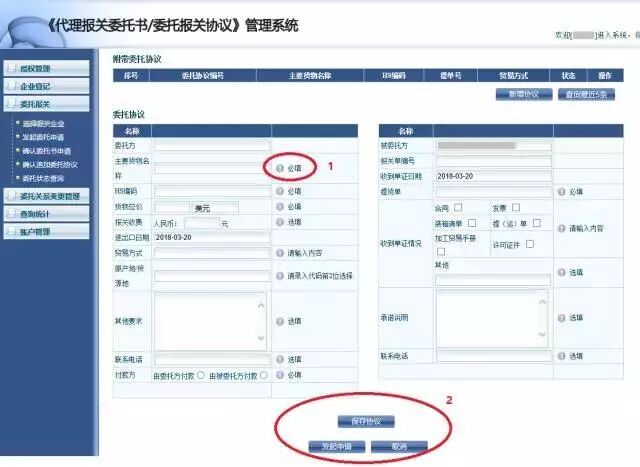 2、在系统中,报关委托双方均可以向对方发起电子报关委托申请,无论哪一方发起申请,都需要经过对方确认方可建立委托关系和电子委托协议。