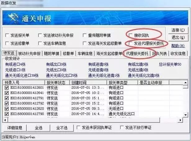 (3)进入收发界面发送代理报关委托单证,收取回执