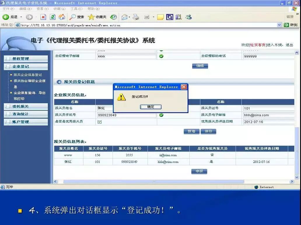 1、浏览器请使用IE8的配置;使用电子口岸IC卡登录系统,报关企业信息登记/变更请用法人卡,发起委托可以是操作员卡;