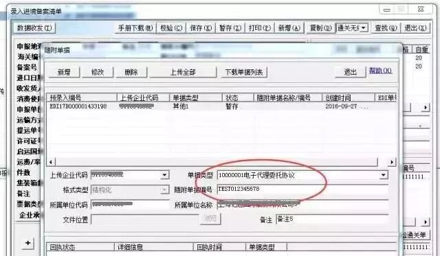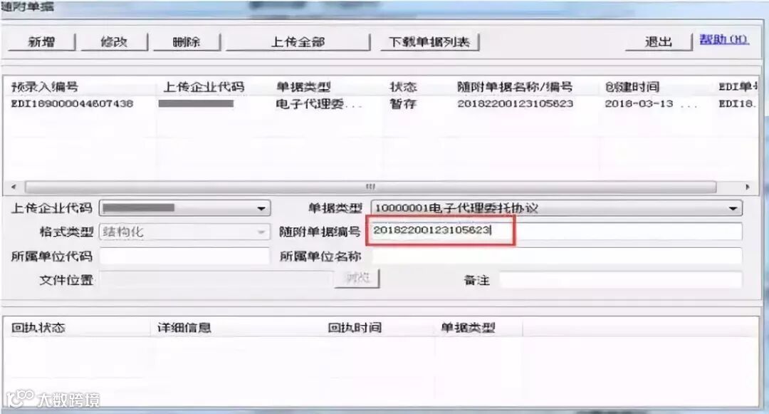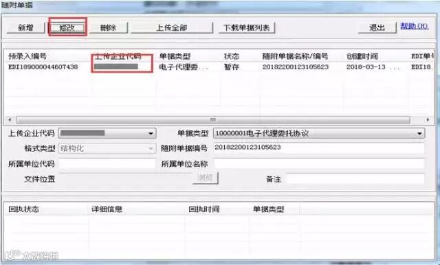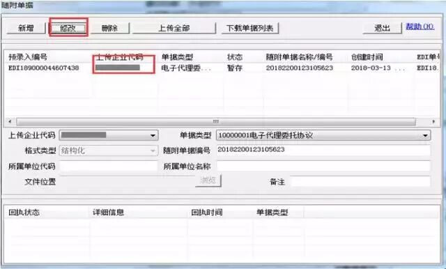 Q:上传【企业代码】:代理报关委托协议回填至随附单据后“上传企业代码”为空