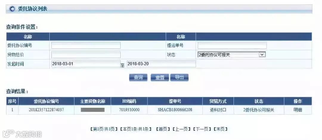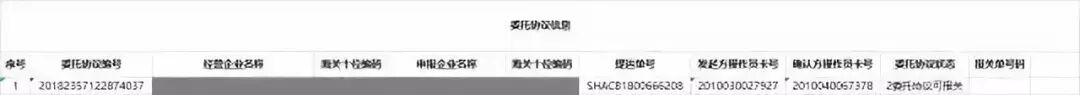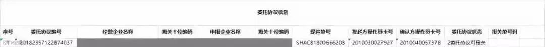 导出excel内容如下:(如果是“委托协议海关已用”,会有报关单号