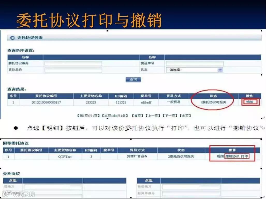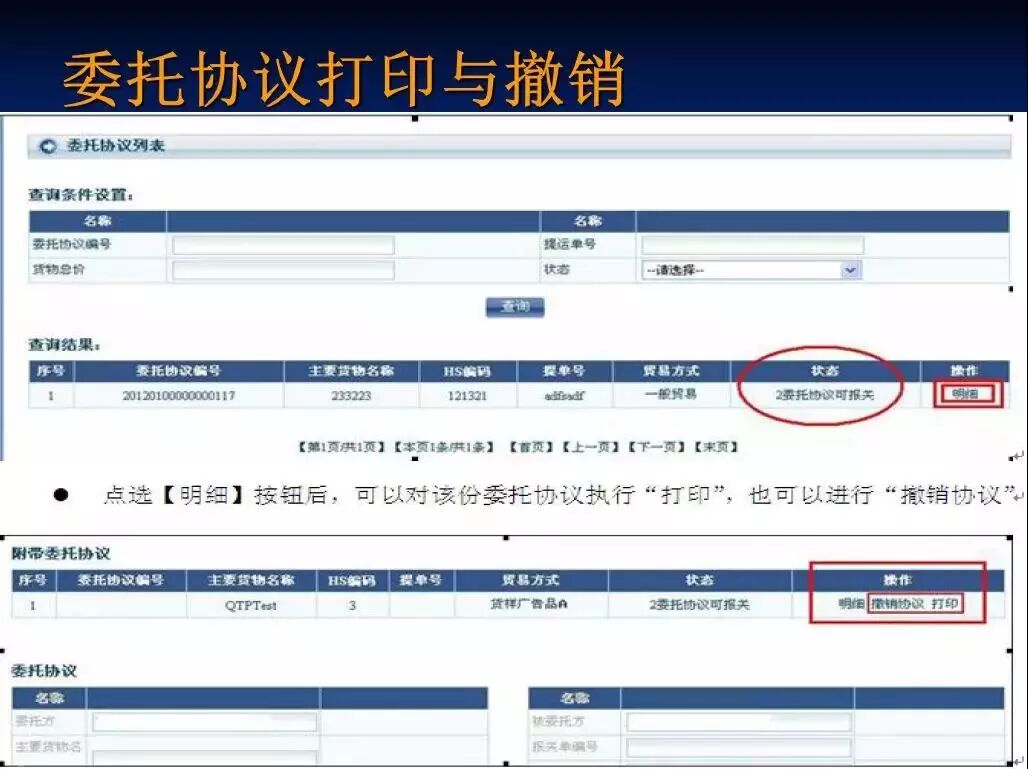 A:委托协议海关已用”状态下,方可打印,具体操作: