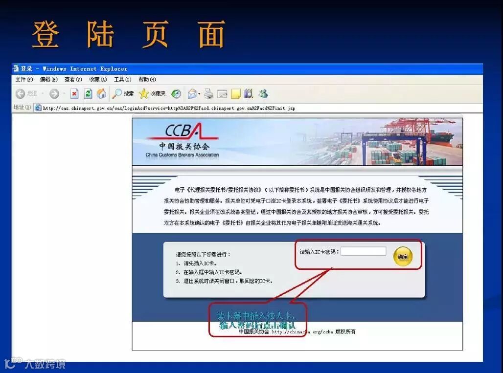 登陆网址:http://acd.chinaport.gov.cn/acd/(登录界面如下,输入IC卡密码后使用)