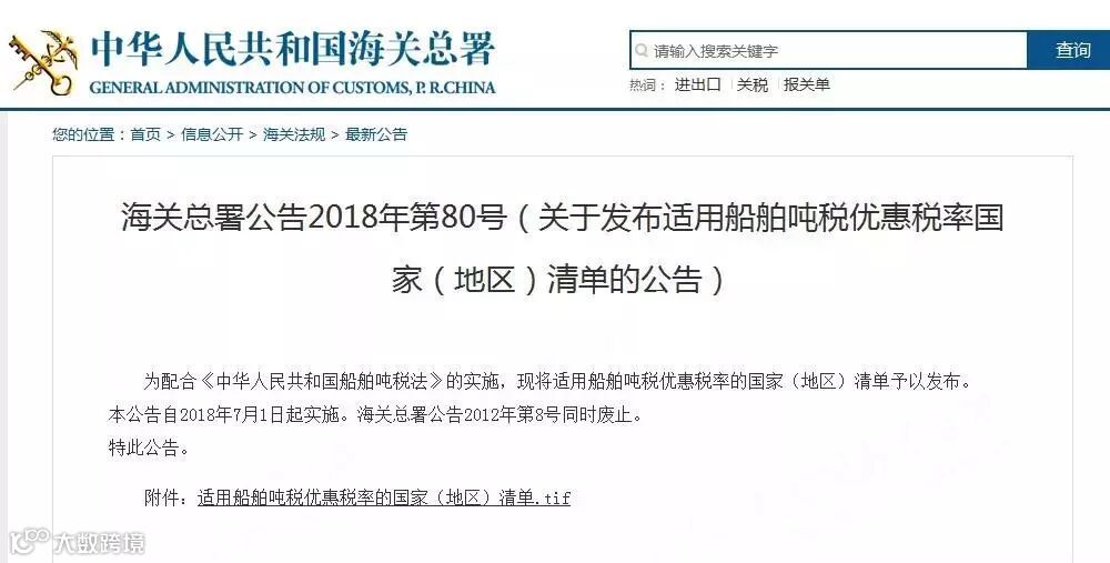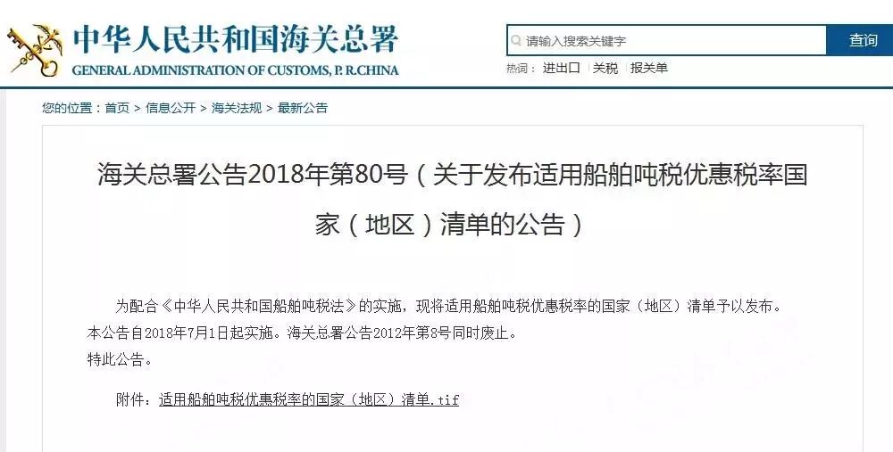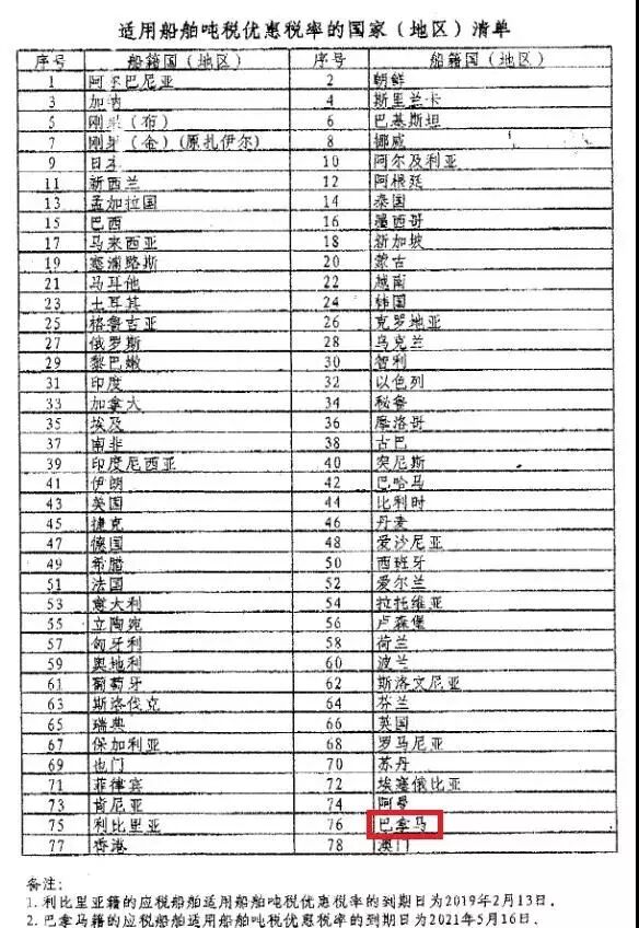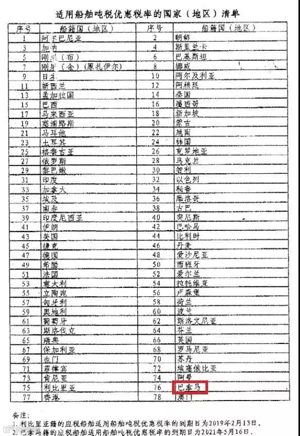 果不其然,6月29日海关总署就在其官网上发布《海关总署公告2018年第80号(关于发布适用船舶吨税优惠税率国家(地区)清单的公告)》。该公告附件显示:巴拿马籍船舶已经在吨税优惠税率的清单上了。