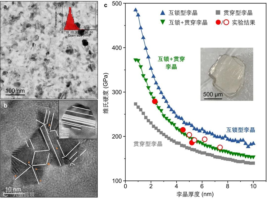 这一突破不仅刷新了硬度纪录,更为突破共价材料硬度极限开辟了新思路。通过孪晶组织的细化和类型调控,研究团队开创了提升材料性能的新途径,这对超硬材料的未来研发具有重要指导意义。